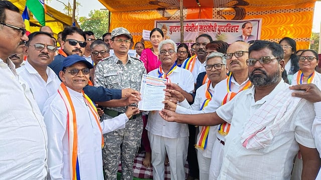 गडचिरोली : बोधगया येथील महाबोधी महाविहार बौद्धांच्या ताब्यात देण्यात यावे आणि बोधगया मंदिर व्यवस्थापन कायदा १९४९ मध्ये सुधारणा करण्याच्या मागणीसाठी आज बौद्ध महासभा आणि इतर आंबेडकरी संघटनांनी गडचिरोलीत धरणे आंदोलन केले.