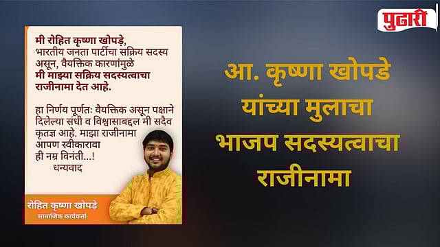 नागपूर : पूर्व नागपूरचे भाजप आमदार कृष्णा खोपडे यांचा मुलगा रोहित खोपडे यांनी भारतीय जनता पार्टीच्या प्राथमिक, सक्रीय सदस्यत्वाचा राजीनामा दिला आहे. गेली चार टर्म भाजप आमदार असलेले, केंद्रीय मंत्री नितीन गडकरी यांना सर्वाधिक 74 हजारांचे मताधिक्य देणारे कृष्णा खोपडे यांच्यासाठी हा मोठा धक्का मानला जात आहे.