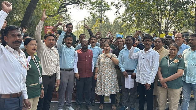 नागपूर : केंद्र सरकारप्रमाणे मेट्रो कर्मचाऱ्यांना वेतन द्या, या मागणीसाठी शुक्रवारी (दि.३१) जवळपास ७०० कंत्राटी कर्मचाऱ्यांच्या वतीने मेट्रो भवनवर धडक मोर्चा काढला. नागपूर मेट्रोचे व्यवस्थापकीय संचालक श्रावण हर्डीकर यांना वेतन वाढबाबत निवेदन देत कर्मचाऱ्यांनी संताप व्यक्त केला. १० दिवसात तोडगा काढला नाही तर यापेक्षाही तीव्र आंदोलन केले जाईल, असा इशारा यावेळी देण्यात आला.