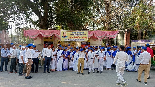 नागपूर : समता सैनिक दलाच्या वतीने संविधान चौकात गुरुवारी अनुसूचित जाती, जमातीच्या लोकसंख्येच्या प्रमाणात बजेट मध्ये वाटा आणि त्या वाट्याकरिता कायदा सुनिश्चित करा, बजेट बॅकलाॅग जाहीर करा, एससी, एसटी विद्यार्थ्यांना शिष्यवृत्तीची उत्पन्न मर्यादा 8 लाख रुपये करण्यात यावी, रमाई घरकुल योजनेची मर्यादा 5 लक्ष करा, सुशिक्षित बेरोजगारांना व्यवसाय उद्योगाकरीता 4 टक्के दराने अर्थ सहाय्य द्या आदी मागण्यासाठी धरणे आंदोलन करण्यात आले.