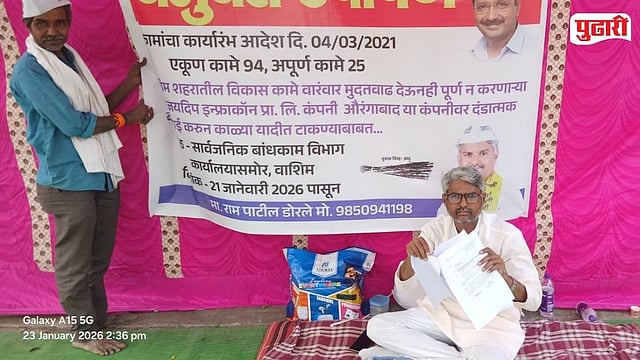 वाशिम : नगर परिषद हद्दीतील विकासकामे वारंवार मुदतवाढ देऊनही अपूर्ण ठेवणाऱ्या मे. अजयदिप इन्फ्राकॉन प्रा. लि. या ठेकेदार कंपनीविरोधात कारवाई करावी, या मागणीसाठी आम आदमी पार्टीने 21 जानेवारीपासून सार्वजनिक बांधकाम विभाग कार्यालयासमोर बेमुदत उपोषण सुरू केले होते. या आंदोलनाची दखल घेत सार्वजनिक बांधकाम उपविभागाच्या सहाय्यक अभियंत्यांनी संबंधित कंपनीला काळ्या यादीत टाकण्यासह दंडात्मक कारवाईचा प्रस्ताव 23 जानेवारी रोजी कार्यकारी अभियंत्यांकडे सादर केला. या लेखी आश्वासनानंतर ‘आप’चे नेते राम पाटील डोरले यांनी उपोषण मागे घेतले.