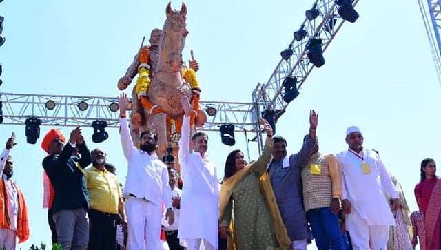 वाशिम, पुढारी वृत्तसेवा : वाशिम नगर परिषदेमार्फत उभारण्यात आलेल्या छत्रपती शिवाजी महाराज यांच्या अश्वारुढ पुतळ्याचे अनावरण आज (दि.४) मुख्यमंत्री एकनाथ शिंदे यांच्या हस्ते करण्यात आले. यावेळी अनेक वर्षांची मागणी पूर्ण झाल्याने वाशिमकरांमध्ये उत्साहाचे वातावरण निर्माण झाले होते. छत्रपती शिवरायांच्या जयजयकाराने आसमंत दणाणून गेला होता.