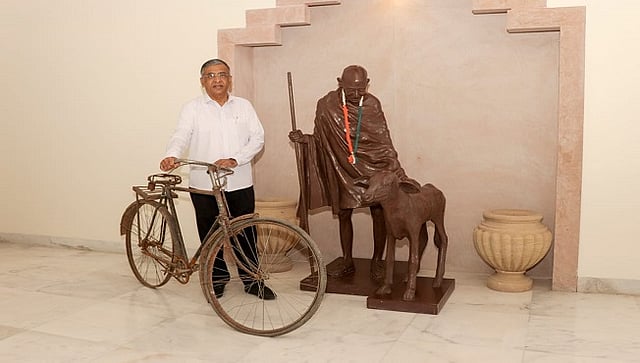 जळगाव : भारतीय स्वातंत्र्य लढ्यात उत्तरप्रदेशातील स्वातंत्र्य सैनिक स्व. प्रभुदयाल विद्यार्थी यांना खुद्द महात्मा गांधीजींनी एक सायकल भेट दिली होती. प्रभुदयालजी यांच्या पत्नी तथा माजी आमदार कमला साहनी आणि त्यांची मुलगी अमिया रूंगठा यांनी ही सायकल महात्मा गांधीजींचे पणतू तुषार गांधी यांच्या सांगण्यावरून गांधी रिसर्च फाऊंडेशनचे प्रतिनिधी सुभाष साळुंखे यांच्याकडे दिली व ती जळगाव येथे आणली. महात्मा गांधीजींच्या परिस स्पर्शाने आठवणींचे सोने झालेली ही सायकल गांधी तीर्थमध्ये लवकरच संग्रहालयात ठेवण्यात येणार आहेत.