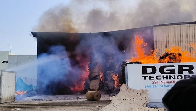 मनमाड येथील नगर चौकी मार्गावर असलेल्या सचिन दराडे यांच्या मालकीची निंबस पॅकिंग कंपनीला भीषण आग लागली आहे. या आगीत लाखो रुपयांचा माल जळून खाक झाला असून मनमाड नगरपालिकेचे अग्निशमन दलाचे जवान आग विझवण्यासाठी शर्थीचे प्रयत्न करत आहेत. येथील सामजिक कार्यकर्ते माजी नगरसेवक यांच्यासह अनेक कार्यकर्ते आग विझविण्यासाठी प्रयत्न करत असून कंपनीच्या बॉलरमध्ये आग लागल्यानंतर आगीने रौद्र रूप धारण केल्याने परिसरात भितीचे वातावरण निर्माण झाले आहे.