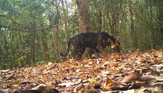 भारतीय वनसेवा अधिकारी रमेश पांडे यांनी ट्विटरवर या मेलेनिस्टिक वाघाचा व्हिडिओ शेअर केला आहे. ओडिशातील सिमिलापाल व्याघ्र प्रकल्पात हा वाघ दिसला आहे. पोस्टच्या कॅप्शनमध्ये, IFS रमेश पांडे यांनी लिहिले, "सिमिलीपाल टायगर रिझर्व्ह, ओडिशातील एका मेलेनिस्टिक वाघाचा सुंदर कॅमेरा ट्रॅप व्हिडिओ, लोकसंख्येतील अनुवांशिक उत्परिवर्तनामुळे आपल्याला काळेभोर वाघ दिसतात."