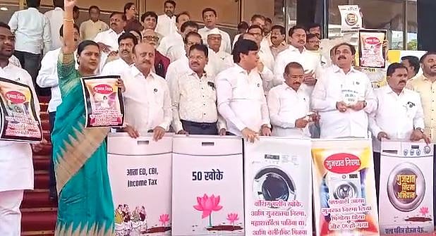 मुंबई; पुढारी वृत्तसेवा : गुजरातचा निरमा, क्लीनचीट मिळवा… पन्नास खोके, एकदम ओके…गुजरात निरमा… ईडी, सीबीआय, आयटी मागे नाही लागणार… वॉशिंग मशीन खोके, आणि गुजरातचा निरमा, महाशक्तीला पाठिंबा द्या आणि क्लीनचीट मिळवा… गुजरात निरमा अभियान, चला पवित्र होऊन येऊ…अशा घोषणा देत महाविकास आघाडीच्या आमदारांनी विधान भवनाच्या पायर्यांवर जोरदार निदर्शने करत आंदोलन केले.