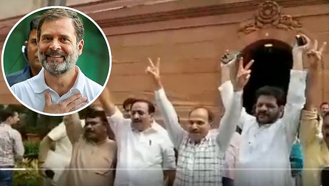 सर्वोच्च न्यायालयाने 'मोदी' आडनाव टिप्पणी बदनामी प्रकरणात राहुल गांधींच्या (Modi surname remark) शिक्षेला स्थगिती दिल्यानंतर काँग्रेस कार्यकर्त्यांनी दिल्लीतील AICC मुख्यालयात आनंदोत्सव साजरा केला.