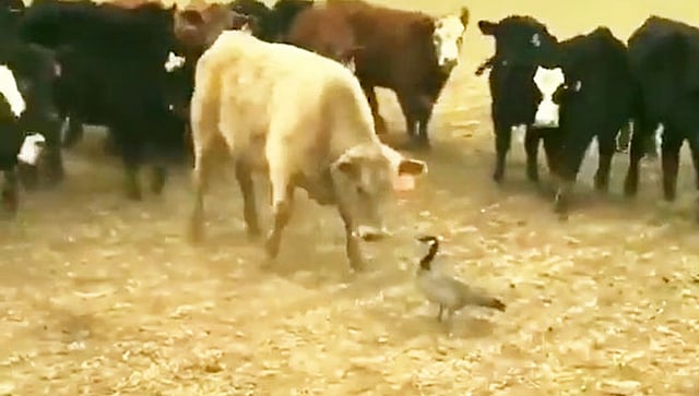 या व्हायरल व्हिडिओमध्ये काही गायी एका छोट्याशा हंस पक्षासोबत लढताना दिसत आहेत. तुम्ही व्हिडिओमध्ये पाहू शकता की, गाय आणि हंस दोघांच्या टक्कर होत आहे. त्यात हंस पक्षी गायींशी एकटा भिडताना दिसत आहे. एकटा हंस पक्षी गायींच्या कळपात मधोमध उभा आहे आणि सर्वांना एकटा लढताना दिसत आहे.
