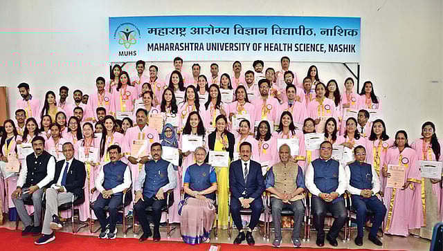 महाराष्ट्र आरोग्य विज्ञान विद्यापीठाचा 22 वा दीक्षान्त समारंभ सोमवारी (दि. 13) ना. महाजन यांच्या अध्यक्षतेखाली झाला. विद्यापीठ मुख्यालयात झालेल्या सोहळ्याप्रसंगी पुणे विद्यापीठाचे प्रा. डॉ. भूषण पटवर्धन हे प्रमुख अतिथी म्हणून उपस्थित होते. व्यासपीठावर कुलगुरू लेफ्टनंट जनरल (नि.) डॉ. माधुरी कानिटकर, प्रति-कुलगुरू डॉ. मिलिंद निकुंभ, कुलसचिव डॉ. राजेंद्र बंगाळ, विद्यापीठ व्यवस्थापन परिषद सदस्य डॉ. अजित गोपछडे, डॉ. सुरेश पाटणकर, वित्त व लेखाधिकारी एन. व्ही. कळसकर आदी उपस्थित होते. ना. गिरीश महाजन म्हणाले की, कट प्रॅक्टिसविरोधात कायदा आणण्यासाठी शासन स्तरावर प्रयत्न सुरू आहेत. केंद्र शासनाकडे याबाबत पाठपुरावा केला जातोय. राज्यात हा कायदा लागू करताना त्याची कठोर अंमलबजावणी केली जाईल, असे त्यांनी सांगितले. आरोग्य क्षेत्रातील काम हे निश्चितच आव्हानात्मक असून, या क्षेत्रात कार्यरत सर्वांनीच सकारात्मतेची जोपासना करावी. डॉक्टर आणि रुग्ण व त्यांचे नातेवाईक यामध्ये होणारे कटूप्रसंग टाळण्यासाठी उत्तम संवाद राखताना आरोग्यसेवेमध्ये रुग्णासमवेत सामाजिक बांधिलकीची जोपासना करणे गरजेचे असल्याचे मत ना. महाजन यांनी व्यक्त केले. विद्यापीठाच्या कर्मचार्यांचे शासनाकडे प्रलंबित प्रश्न सोडविण्यासाठी सर्वतोपरी मदत करण्याचे आश्वासन त्यांनी यावेळी दिले. डॉ. भूषण पटवर्धन यांनी मनोगतात सांगितले की, बदलत्या लाइफस्टाइलमुळे उद्भवणार्या आजारांचे प्रमाण सातत्याने वाढत आहे. या आजारांवर एकाच पॅथीकडे उपचार नाही. सर्वच उपचार पद्धतींमधील वेगवेगळ्या गोष्टींचा समुच्चय करून या आजारांवर मात करणे शक्य असल्याचे ते म्हणाले. डॉ. कानिटकर यांनी विद्यापीठातील उपक्रमांची माहिती देताना, येत्या दोन वर्षांत विद्यापीठ प्रशासनाचे कामकाज पेपरलेस करण्याचा प्रयत्न असल्याचे सांगितले. जनसंपर्क अधिकारी डॉ. स्वप्निल तोरणे यांनी सूत्रसंचालन केले, तर परीक्षा नियंत्रक डॉ. संदीप कडू यांनी आभार मानले. समारंभास विद्यापीठ विद्याशाखांचे अधिष्ठाता विविध प्राधिकरण सदस्य, लोकप्रतिनिधी, विविध क्षेत्रांतील मान्यवर, अधिकारी, कर्मचारी, विद्यार्थी व पालक उपस्थित होते.
