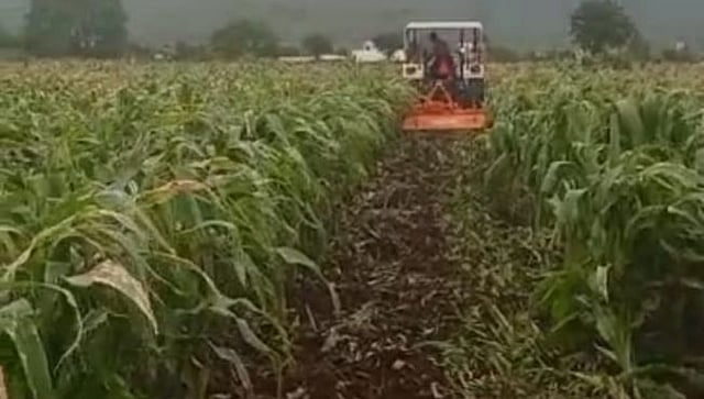 देवळा तालुक्यातील खर्डे येथील शेतकरी अशोक भावराव गांगुर्डे यांनी मोठ्या आशेने पेरलेला मका पाण्याअभावी करपून गेल्याने अखेर त्यावर रोटर फिरवली आहे.