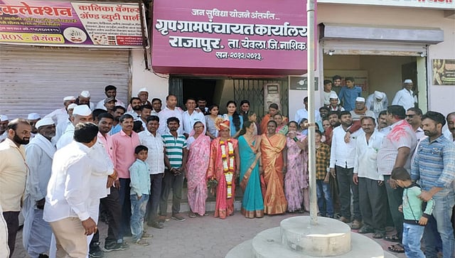 राजापूर : राजापूर सोमठाणजोश ग्रुप ग्रामपंचायतच्या सरपंचपदी वंदना आगवन यांची बिनविरोध निवड झाल्याने त्यांचा सत्कार करताना ग्रामपंचायत सदस्य व पदाधिकारी आणि ग्रामस्थ. (छाया: लाल कुडके)