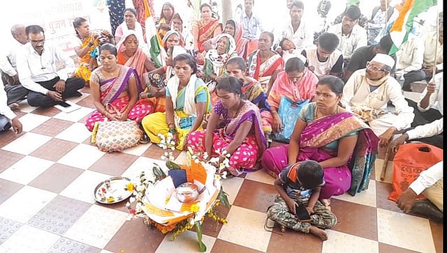 रेशनकार्ड टोपलीत सजवून बोरटेंबे ते तहसील कार्यालयापर्यंत सवाद्य मिरवणूक काढली. त्यानंतर तहसील कार्यालयाच्या प्रवेशद्वारावर संघटनेच्या महिला सदस्यांनी जागरण गोंधळ घालत रेशनकार्ड पूजन करून तहसीलदारांना भेट देण्यात आले. उच्च न्यायालयाने आदिम कातकरी कुटुंबाला तत्काळ रेशनकार्ड देऊन धान्य द्यावे, असे आदेश दिले होते. त्यानुसार पुरवठा कार्यालयाकडून कातकरी कुटुंबाला रेशनकार्ड दिले. मात्र त्यांना धान्य दिले जात नसल्याची आंदोलनकर्त्यांची तक्रार आहे. ज्या कुटुंबाला कार्ड दिले आहेत त्यांना तत्काळ धान्य देण्यात यावे, अशी मागणी करण्यात आली. या आंदोलनात एल्गार कष्टकरी संघटनेचे अध्यक्ष भगवान मधे, संतोष ठोंबरे, गणपत गावंडा, तानाजी कुंदे, राजू भगत, बाळू उघडे, काळू भस्मे, मंगल खडके, नवनाथ निबकेर, वसंत इरते, मथुरा भगत, रोहिणी चव्हाण, लता मेंगाळ, काळू निरगुडे आदींसह शेकडो कायकर्ते उपस्थित होते.