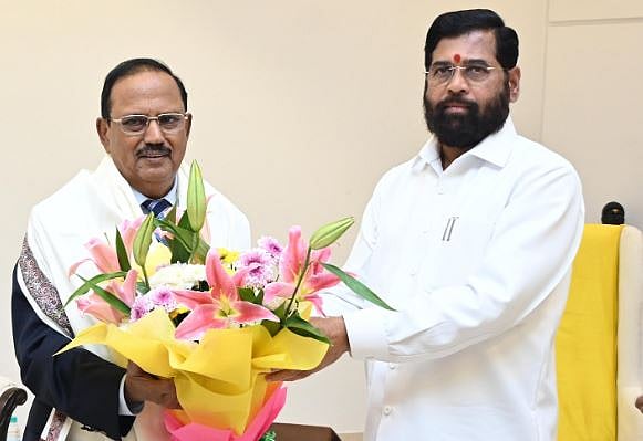 पुढारी ऑनलाईन डेस्क : राष्ट्रीय सुरक्षा सल्लागार अजित डोवाल यांनी काल दि. १७ नोव्हेंबर रोजी मुख्यमंत्री एकनाथ शिंदे यांची सदिच्छा भेट घेतली. 'वर्षा' निवासस्थानी ही भेट घेतली. यावेळी मुख्यमंत्र्यांनी डोवाल यांचे शाल, पुष्पगुच्छ देऊन स्वागत केले. यावेळी उभयतांमध्ये केंद्र आणि राज्य सरकारशी संबंधित विविध विषयांवर चर्चा झाली.