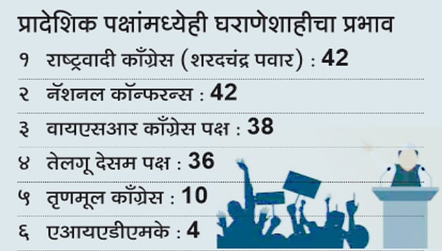 निवडणूक सुधारणांसाठी काम करणार्या ‘असोसिएशन फॉर डेमोक्रॅटिक रिफॉर्म्स’ (एडीआर) आणि ‘नॅशनल इलेक्शन वॉच’ यांनी सादर केलेल्या अहवालातून ही धक्कादायक माहिती उघड झाली आहे. या अहवालात म्हटल्यानुसार, राष्ट्रीय पक्षांचे एकूण 20 टक्के लोकप्रतिनिधी घराणेशाहीतून आले आहेत. काँग्रेसमध्ये सर्वाधिक 32 टक्के विद्यमान खासदार आणि आमदार राजकीय वारसदार आहेत. देशातील सर्वात मोठा पक्ष असलेल्या भाजपमध्ये हे प्रमाण 18 टक्के आहे. मार्क्सवादी कम्युनिस्ट पक्षात सर्वात कमी, केवळ 8 टक्के प्रतिनिधी घराणेशाहीची पार्श्वभूमी असलेले आहेत.