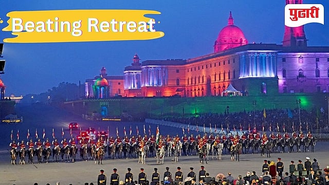 नवी दिल्ली : प्रजासत्ताक दिनाच्या उत्सवाचा औपचारिक समारोप करणारा पारंपरिक ‘बीटिंग रिट्रीट’ समारोह शुक्रवारी संध्याकाळी दिल्लीतील विजय चौक येथे दिमाखात पार पडला. राष्ट्रपती द्रौपदी मुर्मू यांच्या प्रमुख उपस्थितीत झालेल्या या सोहळ्यास उपराष्ट्रपती सी. पी. राधाकृष्णन, पंतप्रधान नरेंद्र मोदी, संरक्षणमंत्री राजनाथ सिंह तसेच तिन्ही सेना दलाचे प्रमुख उपस्थित होते. या समारंभात भारतीय सशस्त्र दलांचा जोश, शिस्त आणि सांस्कृतिक परंपरेचे प्रभावी दर्शन घडले.