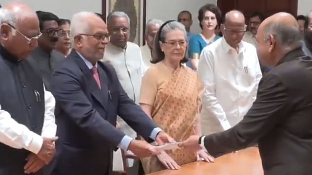 इंडिया आघाडीचे उपराष्ट्रपतीपदाचे उमेदवार, सर्वोच्च न्यायालयाचे निवृत्त न्यायमूर्ती बी. सुदर्शन रेड्डी यांनी गुरुवारी (दि. २१ ऑगस्ट) अर्ज दाखल केला. यावेळी काँग्रेसचे राष्ट्रीय अध्यक्ष, राज्यसभा खासदार मल्लिकार्जुन खर्गे, काँग्रेस संसदीय पक्षाच्या अध्यक्षा सोनिया गांधी आणि लोकसभा खासदार राहुल गांधी उपस्थित होते. काल बुधवारी (दि. २० ऑगस्ट) महाराष्ट्राचे राज्यपाल सी. पी. राधाकृष्णन यांनी एनडीएचे उपराष्ट्रपतीपदाचे उमेदवार म्हणून अर्ज दाखल केला होता. यामुळे उपराष्ट्रपतीपदासाठी एनडीएचे सी. पी. राधाकृष्णन विरुद्ध इंडिया आघाडीचे बी. सुदर्शन रेड्डी यांच्यात थेट सामना होईल.