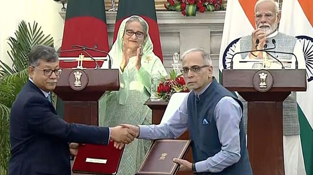 भारत आणि बांगलादेश दरम्‍यान आज महत्त्‍वाचे दहा करार झाले.  ANI Photo