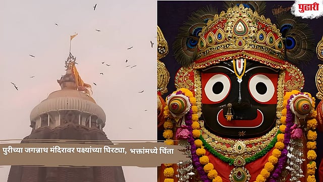 ओडिशातील पुरी येथील जगन्नाथ मंदिराचा व्हिडिओ सोशल मीडियावर वेगाने व्हायरल होत आहे. या व्हिडिओमध्ये पक्ष्यांचा एक थवा मंदिराच्या शिखरावर घिरट्या घालताना दिसतो. काही लोक ही घटना दुर्मिळ असल्याचे सांगत असून तिला एका पौराणिक ग्रंथ ‘भविष्य मालिका’ मधील भविष्यवाणीसोबत जोडून पाहत आहेत. त्यांचा असा विश्वास आहे की, हे दृश्य भविष्यात घडणाऱ्या एखाद्या अशुभ घटनेचा संकेत आहे. मात्र मंदिर प्रशासनाने याला पूर्णपणे नैसर्गिक आणि सामान्य घटना असल्याचे स्पष्ट केले आहे. 2026 च्या सुरुवातीच्या काही दिवस आधी ही घटना अचानक लोकांचे लक्ष वेधून घेत आहे.