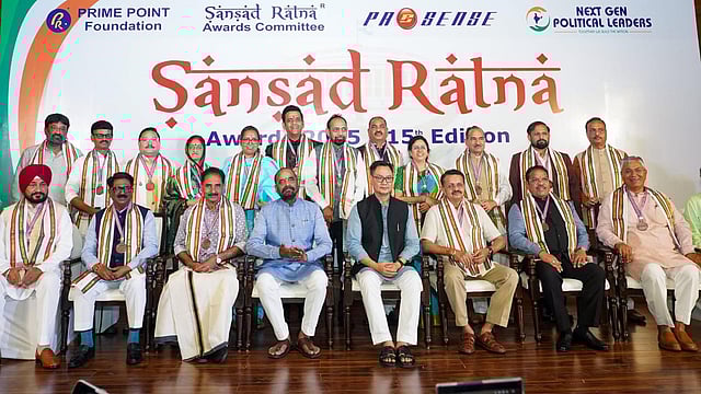 नवी दिल्ली : संसदेतील उल्लेखनीय कामगिरीबद्दल देशातील १५ खासदारांना संसदरत्न पुरस्कार देऊन शनिवारी सन्मानित करण्यात आले. महाराष्ट्रातील खासदार श्रीरंग बारणे यांच्यासह भर्तृहरी महताब, एन.के. प्रेमचंद्रन या खासदारांचा विशेष पुरस्काराने सन्मान करण्यात आला. तर महाराष्ट्रातील खासदार अरविंद सावंत, स्मिता वाघ, वर्षा गायकवाड, नरेश म्हस्के आणि मेधा कुलकर्णी यांना संसदरत्न पुरस्काराने सन्मानित करण्यात आले.