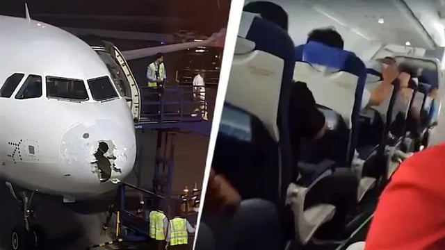 IndiGo flight hits turbulence : दिल्लीहून श्रीनगरकडे जाणाऱ्या इंडिगो विमानाला जोरदार गारपीट वादळाचा फटका बसला. विमानाच्या पुढच्या भागाचे मोठे नुकसान झाले. विमान धावपट्टीवर उतरत असताना हा प्रकार घडल्याने प्रवाशांमध्ये भीतीचे वातावरण निर्माण झाले. काहींनी मोठ्याने आरडाओरडा केल्याने एकच गोंधळ उडला. सुदैवाने विमानाचे श्रीनगर विमानतळावर संध्याकाळी 6.30 वाजता सुरक्षित लँडिंग झाले. एका प्रवाशाने विमानाच्या लॅडिंगवेळी रेकॉर्ड केलेला व्हिडिओ सोशल मीडियावर व्हायरल झाला आहे.