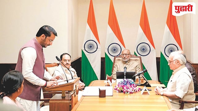 दरम्यान, शपथविधीप्रसंगी पार्थ पवार हे दिवंगत नेते आणि राज्याचे माजी उपमुख्यमंत्री अजित पवार यांच्यासारख्या लुकमध्ये दिसले. दरम्यान पार्थ पवार शपथविधी आटोपल्यानंतर राज्यसभा सभापती राधाकृष्णन यांना नमस्कार करायला गेले.