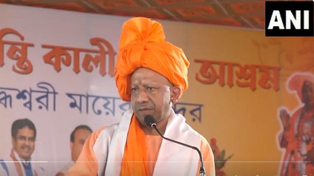 त्रिपुरातील बरकथल येथील सिद्धेश्वरी मंदिराच्या उद्घाटनप्रसंगी बाेलताना उत्तर प्रदेशचे मुख्‍यमंत्री योगी आदित्‍यनाथ.  ANI Photo