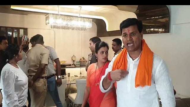 मुंबई, पुढारी ऑनलाईन डेस्क : राणा दांपत्याला पोलिसांनी यशस्वीरित्या घराबाहेर काढले. मोठ्या पोलिस बंदोबस्तात दोघांना खार पोलिस ठाण्यात नेण्यात आले. तत्पूर्वी पोलिसांनी राणा दांपत्याला राहत्या घरातून ताब्यात घेतले. यावेळी घरामध्ये पोलिस आणि राणा दांपत्य यांच्यात खडाजंगी झाली. दोघांनी पोलिसांकडे वॉरंटची मागणी केली. अखेर 5.30 वाजलेनंतर पोलिसांना राणा दांपत्याला घराबाहेर काढण्यात यश आले. दरम्यान, रवि राणा बाहेर येताच घरासमोर जमलेल्या जमावातील एकाने त्यांच्यावर पाण्याची बाटली भिरकावली. घराबाहेर आल्यानंतर राणा दांपत्याने जय श्रीरामचा जयघोष केला. तर शिवसैकांनीही आक्रमक होत प्रतिआव्हान दिले.