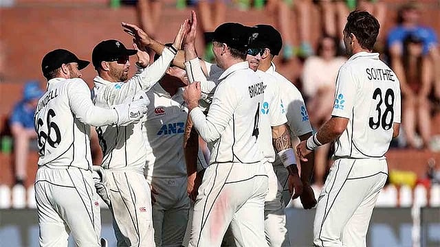 पुढारी ऑनलाईन डेस्क : NZ vs SL Test : श्रीलंकेविरुद्धच्या दुस-या कसोटीत यजमान न्यूझीलंडने (NZ vs SL) आपली पकड मजबूत केली आहे. सामन्याच्या तिसर्या दिवशी श्रीलंकेचा पहिला डाव 66.5 षटकांत 164 धावांवर गुंडाळून किवींनी पाहुण्या संघाला फॉलोऑन दिला आणि पुन्हा एकदा फलंदाजी करण्याची संधी दिली. दिवसाअखेर श्रीलंकेने आपल्या दुसऱ्या डावात 43 षटकात 2 गडी गमावून 113 धावा केल्या असून ते अजूनही 303 धावांनी मागे आहेत. कुसल मेंडिस 50 आणि अँजेलो मॅथ्यूज 1 धावा करून नाबाद आहेत.