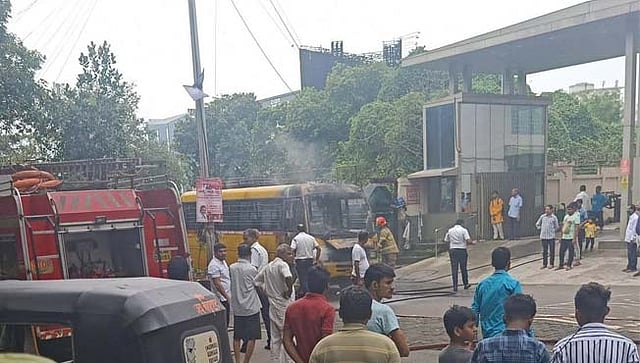 पनवेल: पुढारी वृत्तसेवा : खारघर येथे एका स्कूलबसला भीषण आग लागल्याची घटना सोमवारी दुपारी 12 वाजण्याच्या सुमारास घडली आहे. परंतु, सुदैवाने वाहकाच्या सतर्कतेमुळे त्याने बसमधील तिन्ही विद्यार्थ्यांना खाली उतरविल्याने मोठी दुर्घटना टळली.
