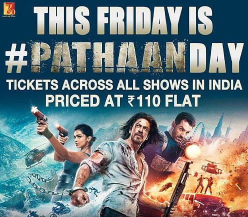 पुढारी ऑनलाईन डेस्क : बॉक्स ऑफिसवर शाहरुख खान (Shahrukh Khan) चा चित्रपट 'पठान' (Pathan) चा दबदबा कायम आहे.(Pathan Day) २५ जानेवारी रोजी रिलीज झालेला हा चित्रपट १००० कोटींच्या उंबरठ्यावर आहे. जगभरातील चित्रपटगृहांमध्ये पठानने आपली जादू कायम ठेवलीय. पठानचे यश सेलिब्रेट करत आता यशराज फिल्म्सने (Yash Raj Films) मोठी घोषणा केलीय. ? १७ फेब्रुवारीला चित्रपटगृहामध्ये 'पठान डे' (Pathan Day) साजरा केला जाणार असून फॅन्सना फक्त ११० रुपयांमध्ये पठान पाहता येणार आहे. (Pathan Day) ?