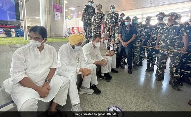 गांधी लखीमपूरला जाण्यावर ठाम राहिले. उत्तर प्रदेशमध्ये जमावबंदी लागू केल्याने आम्ही तिघेजण लखीमपूरला जाणार असल्याचे गांधी यांनी सांगितले. गांधी यांच्या दौऱ्याच्या पार्श्वभूमीवर विमानतळाबाहेर काँग्रेस कार्यकर्ते मोठ्या संख्येने जमले होते. त्यांनी घोषणाबाजीही केली. दरम्यान पोलिसांनी आडकाठी आणल्याने गांधी यांच्यासह पंजाबचे मुख्यमंत्री चरणजीत चन्नी, छत्तीसगढचे मुख्यमंत्री भूपेश बघेल हे धरणे आंदोलनाला बसले. त्यामुळे पोलिसांनी नमते घेत दौऱ्याची परवानगी दिली.