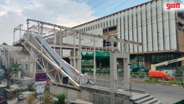 अखेर, नोव्हेंबर 2024 मध्ये कामास सुरुवात करण्यात आली. तेथे जिना, फिरते जिने व लिफ्ट बसविण्यात येत आहे. त्या ठिकाणाहून थेट स्टेशनवर ये-जा करता येणार आहे. एक वर्ष होत आले तरी, अद्याप काम सुरूच आहे. त्यामुळे तेथील पदपथ पूर्णपणे खराब झाला आहे. रस्त्यावर राडारोडा, खडी व इतर बांधकाम साहित्य पडून आहे. तसेच, बॅरिकेट्स लावण्याने रस्ता अरुंद झाला आहे.