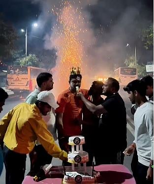 पिंपरी : पिंपरी-चिंचवड येथील सांगवी पोलिस ठाण्याच्या बाहेरच एका पोलिस अंमलदाराचा वाढदिवस जल्लोषात साजरा करण्यात आला. मात्र, वाढदिवसाचा हा जल्लोष राज्यात चर्चेचा विषय ठरला. मध्यरात्री मोठ्या प्रमाणात फटाक्यांची आतिषबाजी, रस्त्याच्या मधोमध गोंधळ आणि त्याचे ड्रोन कॅमेऱ्याने चित्रीकरण करून व्हायरल झालेल्या व्हिडिओमुळे अखेर पोलिस आयुक्तांनी कडक कारवाई करत वाढदिवस साजरा करणाऱ्या चार पोलिसांना तडकाफडकी निलंबित केले आहे.