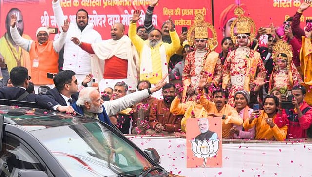 पुढारी ऑनलाईन डेस्क: पंतप्रधान नरेंद्र मोदी आज (दि.३०) आयोध्या दौऱ्यावर आहेत. दरम्यान अयोध्येत दाखल होताच, उत्तर प्रदेशच्या राज्यपाल आनंदीबेन पटेल आणि मुख्यमंत्री योगी आदित्यनाथ यांनी त्यांचे स्वागत केले. त्यानंतर पीएम मोदींचे आयोध्येत आगमन होताच, फुलांच्या पाकळ्याचा वर्षाव करत येथील लोकांनी त्यांचे जंगी स्वागत केले. यावेळी पीएम मोदी यांनी देखील ताफ्यातील गाडीतून हात उंचावत, नमस्कार करत लोकांनी प्रतिसाद देत जोरदार रोड शो केला आहे. (PM Modi In Ayodhya)