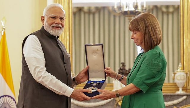 पुढारी ऑनलाईन : पंतप्रधान नरेंद्र मोदी हे सध्या ग्रीसच्या दौऱ्यावर आहेत. ग्रीसमधील अथेन्स शहरात पोहोचताच त्यांचे जोरदार स्वागत करण्यात आले. दरम्यान, ग्रीसच्या राष्ट्राध्यक्ष कॅटेरिना साकेलारोपौलो यांनी पीएम मोदी यांना 'ग्रँड क्रॉस ऑफ द ऑर्डर ऑफ ऑनर' ने सन्मानित केले.