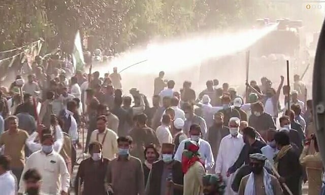 इस्लामाबाद पोलिसांनी मंगळवारी ( दि. १४ ) इम्रान खान यांच्या जमान पार्क निवासस्थानाबाहेर जमलेल्या पीटीआय कार्यकर्त्यांना पांगवण्यासाठी पाण्याचा तोफ आणि अश्रूधुराच्या कांड्या फोडल्या. समर्थकांना पाण्याच्या फवार्याने पांगवत होते. यावेवेळी समर्थक पोलिसांवर दगडफेक केली तर पोलिस आणि पीटीआय समर्थकांमध्ये हाणामारीही झाली, असे वृत्त पाकिस्तानमधील डॉन वृत्तपत्राने दिले आहे.