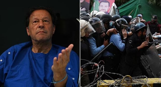 इस्लामाबाद पोलिसांनी मंगळवारी ( दि. १४ ) इम्रान खान यांच्या जमान पार्क निवासस्थानाबाहेर जमलेल्या पीटीआय कार्यकर्त्यांना पांगवण्यासाठी पाण्याचा तोफ आणि अश्रूधुराच्या कांड्या फोडल्या. समर्थकांना पाण्याच्या फवार्याने पांगवत होते. यावेवेळी समर्थक पोलिसांवर दगडफेक केली तर पोलिस आणि पीटीआय समर्थकांमध्ये हाणामारीही झाली, पोलिसांसह कार्यकर्तेही जखमी झाल्याचे व्हिडिओ सोशल मीडियावर व्हायरल होत आहेत. व्हिडिओंमध्ये पोलिस अश्रुधुराचे नळकांडी फोडताना आणि आंदोलकांवर लाठीचार्ज करताना दिसत आहे. या धुमश्चक्रीनंतर इम्रान खान यांनी सांगितले की, माझ्या अटकेसाठी पाकिस्तान सरकारवर पदेशातून दबाव आहे. माझ्या अटकेचा कट रण्यात आल्याचा आरोपही त्यांनी केला.
