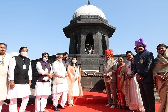 राष्ट्रपती रामनाथ कोविंद यांच्यासोबत त्यांच्या पत्नी सविता कोविंद, महाराष्ट्राचे राज्यपाल भगतसिंग कोश्यारी, खासदार संभाजीराजे छत्रपती आणि मान्यवर उपस्थित होते. यावेळी आयोजित प्रदर्शनाला राष्ट्रपतींनी भेट देऊन दोन पुस्तकांचे प्रकाशनही केले. राष्ट्रपती रामनाथ गोविंद यांनी गडावर आधारित माहितीपटाचे प्रकाशनही केले.