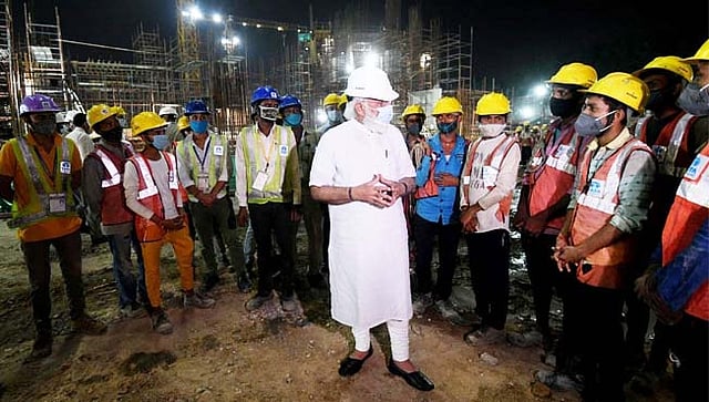 कामाच्या ठिकाणी पंतप्रधान नरेंद्र मोदी अचानक पोहोचले होते. बांधकामाची पाहणी करत असतानाचे त्यांचे फोटो सोशल मीडियावर व्हायरल होत आहेत. या फोटोमध्ये पांढरा रंगाचे सुरक्षा हेल्मटे घालून बांधकामांची पाहणी करत आहेत. पंतप्रधान येणार आहे, याची कोणालाच पूर्वकल्पना नव्हती. अचानक त्यांनी साईट व्हिजीट केली.