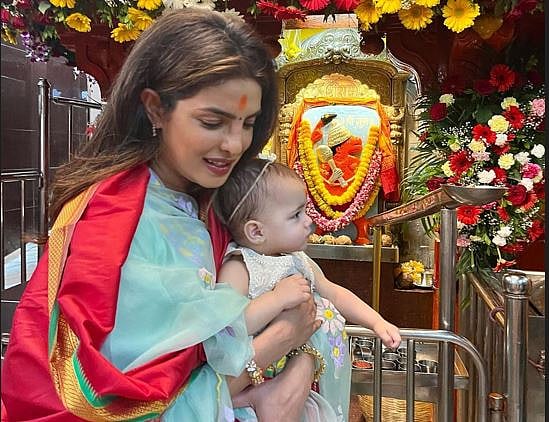 प्रियांका भारतात परत येताच भक्ति रसात तल्लीन झालेली दिसते. प्रियांकाच्या मुलील पंडितने आशीर्वाद दिला. प्रियांका तिचा आगामी चित्रपट सिटाडेलचे प्रमोशन करण्यासाठी भारतात आलीय.