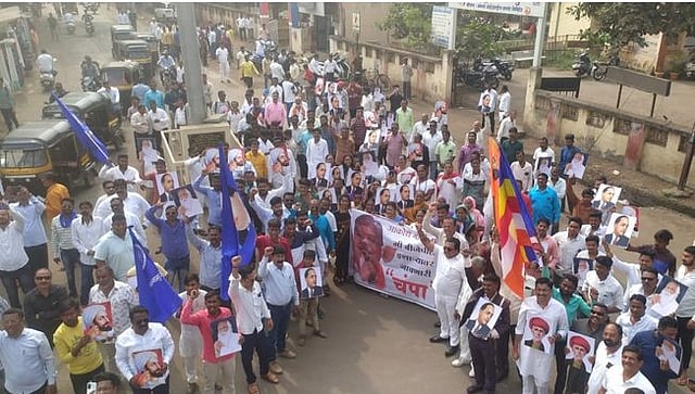 उच्च शिक्षण आणि तंत्रज्ञान मंत्री चंद्रकांत पाटील यांनी महात्मा फुले, भारतीय राज्य घटनेचे शिल्पकार डॉ. बाबासाहेब आंबेडकर, तसेच रयत शिक्षण संस्थेचे संस्थापक कर्मवीर भाऊराव पाटील यांच्याबाबत केलेल्या आक्षेपार्ह विधानाच्या विरोधात आज धुळे शहरात सर्व आंबेडकरी संघटनेसह सर्व पक्षीय आक्रोश मोर्चा काढण्यात आला. या मोर्चास हजारो नागरिक मोठ्या संख्येने उपस्थित झाले होते.