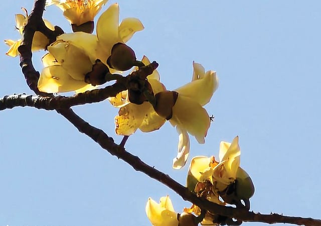 होळीनंतर वसंतोत्सवाला प्रारंभ होत असला तरी वसंत ऋतूच्या स्वागतासाठी अवघा निसर्ग सज्ज झाला आहे. रानमाळावरील आणि डोंगरमाथ्यावरील मोठमोठे वृक्ष आपापल्या परीने सजले आहेत. यामध्ये काटेसावर, पळसाचे वृक्ष तर नखशिखांत बहरल्याने हा चैतन्य सोहळा नयनरम्य दिसत आहे. सध्या शिशिर ऋतूची पानगळही पाहायला मिळत आहे, तर डिसेंबरमध्ये पानगळ झालेल्या काटेसावरीला जानेवारीत कळ्या आल्या आणि बघता बघता लाल गडद आणि पिवळ्या धम्मक… होय पिवळ्या फुलांनी काटेसावर बहरली आहे. साधारणत सर्वत्र लाल काटेसावर आढळून येते. त्यामुळे सर्वांनाच लाल काटेसावरविषयी माहिती असते. मात्र पिवळी फुले येणारी काटेसावरीचे झाड क्वचित आढळून येते.
