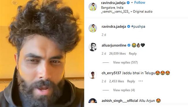जडेजाने इन्स्टाग्रामवर हा व्हिडिओ शेअर केला आहे. हा व्हिडिओ पाहून जडेजाच्या चाहत्यांना त्याचा हा अंदाज खूप पंसद आला आहे. 'पुष्पा पुष्पराज, मै झुकेगा नही साला…' असा हा डायलॉग आहे. त्याच्या या व्हिडिओवर चाहत्यांनी त्याला चित्रपटात काम करण्याचा सल्ला दिलाय. यात जडेजाचे दाढी, केस वाढलेले दिसतात. त्याचा हा लूक पुष्पा मधील अल्लू अर्जुन सारखा दिसत आहे. जडेजाच्या (Ravindra Jadeja) नव्या अंदाजावर कमेंट्सचा पाऊस सुरु आहे.