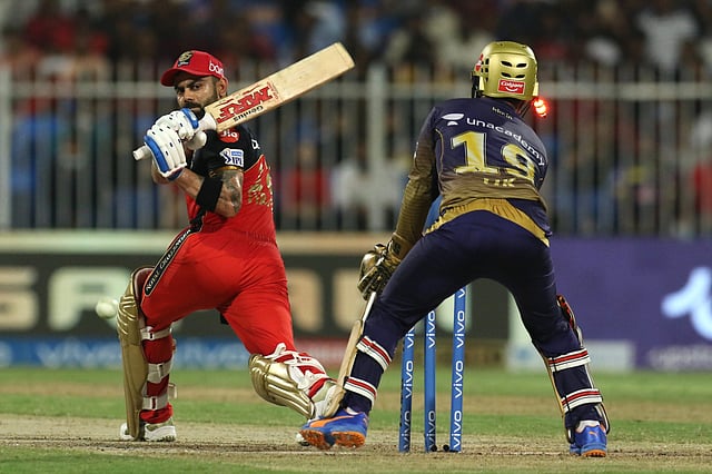 आरसीबीने २ विकेट्सच्या मोबदल्यात १० षटकात ७० धावांपर्यंत मजल मारली. विराटच्या साथीला आलेल्या ग्लेन मॅक्सवेलने आक्रमक सुरुवात केली. मात्र सुनिल नारायणने ३३ चेंडूत ३९ धावा करणाऱ्या विराटचा त्रिफळा उडवला आणि आरसीबीला तिसरा आणि मोठा धक्का दिला.
