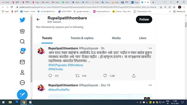 रुपाली पाटील यांनी ट्विटरवर म्हटले आहे की, 'आज शरद पवार साहेबांना आशिर्वाद देऊ शकतील असे 'हात' नाहीत व पवार साहेब झुकून नमस्कार करतील असे 'पाय' दिसत नाहीत. हो म्हणूनच ठरलय! या वटवृक्षाच्या सावलीत महाविकास आघाडीत स्थिरावणार…!'
