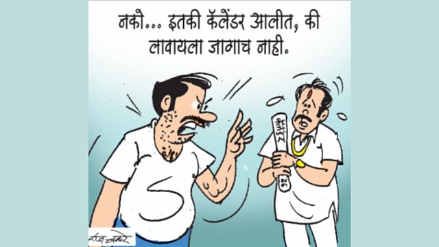 साहेबांचा वाढदिवस कधी असतो, ते ठळक अक्षरांमध्ये त्या महिन्यात त्या तारखेला लिहिलेले असते. तिथे सोबत फोटो असतो. शिवाय आमचे प्रेरणास्थान, आमचे आधारस्तंभ, कार्यसमाट आमदार यांचे फोटो असतात. या सगळ्यांचा उद्देश कॅलेंडरच्या माध्यमातून थेट तुमच्या घरामध्ये आणि जमल्यास मनामध्ये जागा पटकावणे हा असतो.