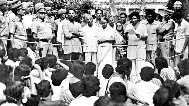 व्यासपीठावर मोठ्या फलकावर मोठ्या अक्षरात लिहिले होते की, ‘जनता आयी हैं, सिंहासन खाली करो।’ त्यावेळी सर्व विरोधी पक्षांनी व सामाजिक संघटनांनी मिळून लोकसंघर्ष समिती तयार केली होती. त्याचे राष्ट्रीय सचिव खासदार नानाजी देशमुख यांनी घोषणा केली की, पुढील काळात देशातील गावागावांत सभा घेऊन इंदिरा गांधी यांच्या राजीनाम्याची मागणी केली जाईल. तसेच 29 जूनपासून राष्ट्रपती भवनासमोर दररोज सत्याग्रह केला जाईल.
