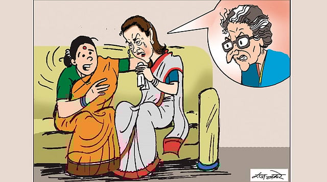 सोनियाजी : अहो काल रात्री उशिरा झोप लागली आणि पहाटे एक स्वप्न पडले आणि स्वप्नात आमच्या सासूबाई आल्या.