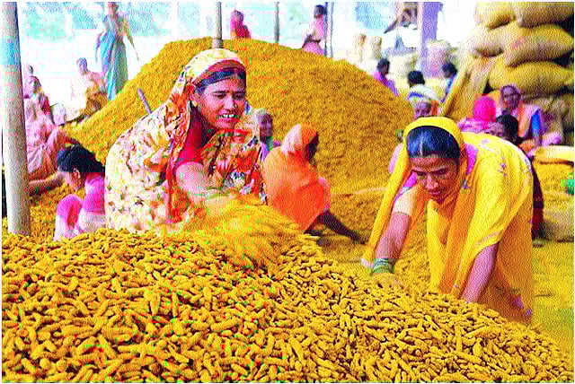 महाराष्ट्र ग्रामीण जीवनोन्नती अभियानांतर्गत (उमेद) सांगली जिल्ह्यातील कडेगाव तालुक्याच्या वांगी येथील लालासो भोसले यांचा हळद, बेदाणा आणि मिरचीपूड ही उत्पादने असलेल्या स्टॉलवर ग्राहकांची एकच गर्दी दिसते.