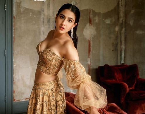 सारा अली खान नेहमीच तिचे फोटो आणि व्हिडिओ चाहत्यांसोबत शेअर करत असते. सारा अली खान डीप नेक ब्लाऊज आणि गोल्डन रंगाचा लहंगा असा पेहराव केला आहे. तिच्या या फोटोंना चाहत्यांनी पसंती दर्शवली आहे. सारा अली खान गोल्डन लेहेंग्यात खूपच सुंदर दिसत आहे. अभिनेत्रीने ऑफ शोल्डर ब्लाउजसह फ्लोरल डिझाईनचा लेहेंगा परिधान केला आहे. तिने केस सोडले आहेत. तिने ज्वेलरी घातली नसली तरी तिचा कम्प्लिट लूक पाहायला मिळत आहे.